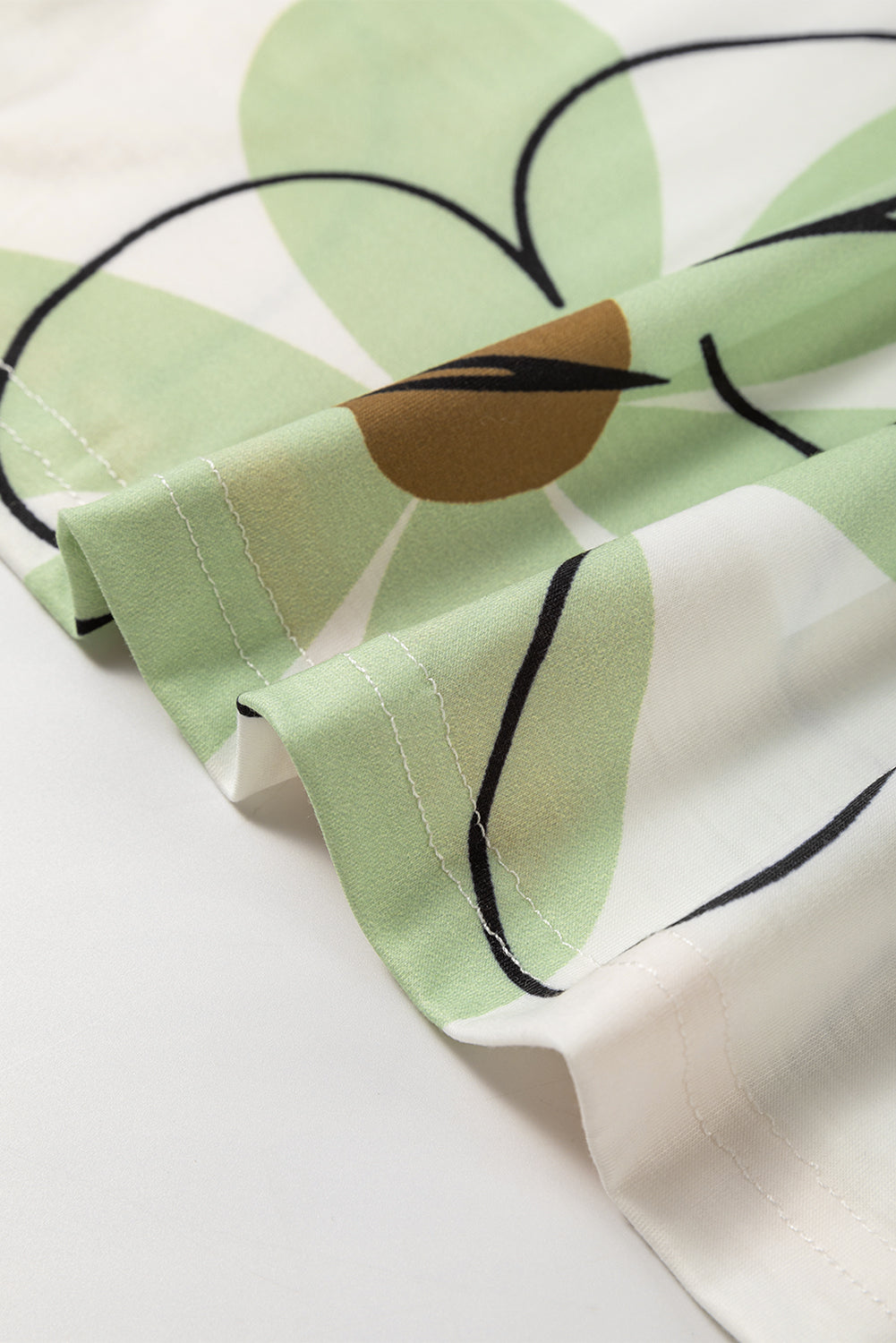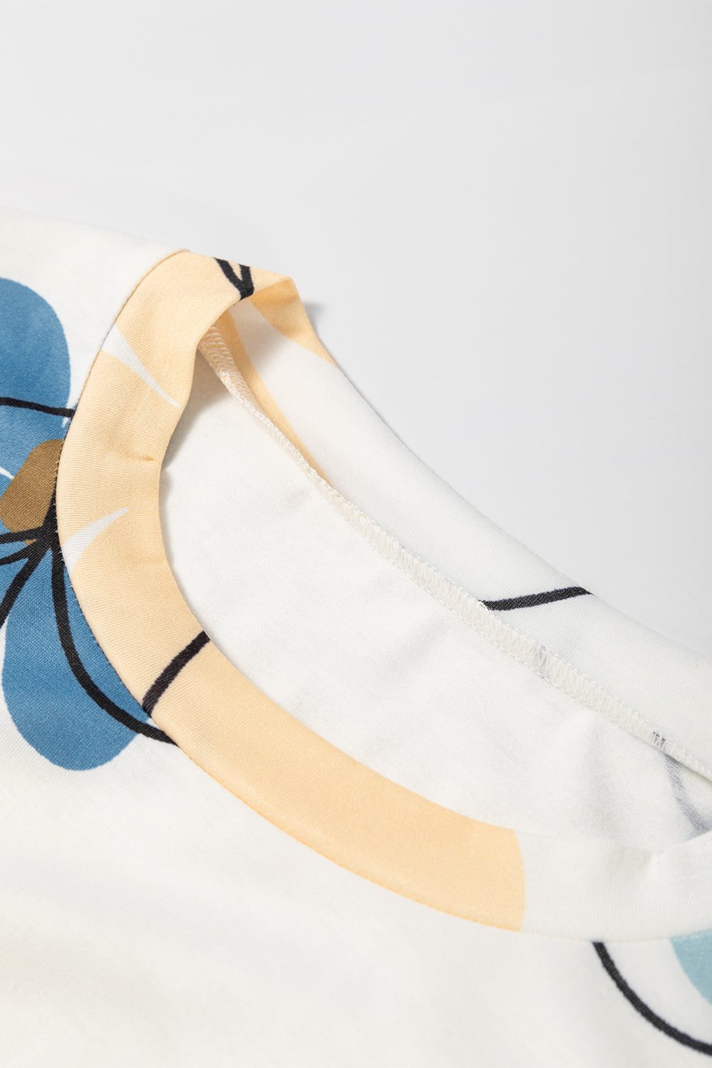 Beige Flower Print Crew Neck Long Sleeve T Shirt