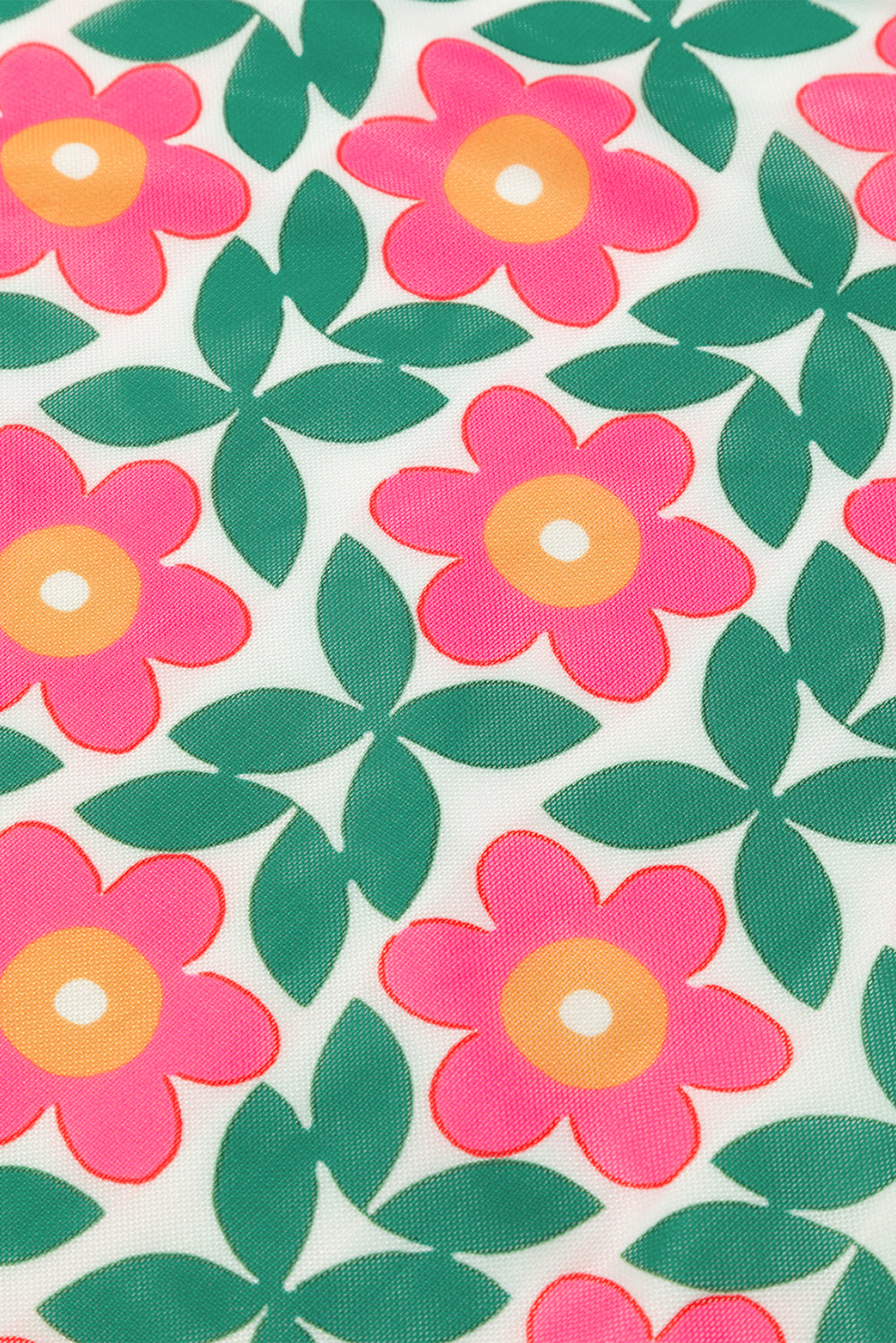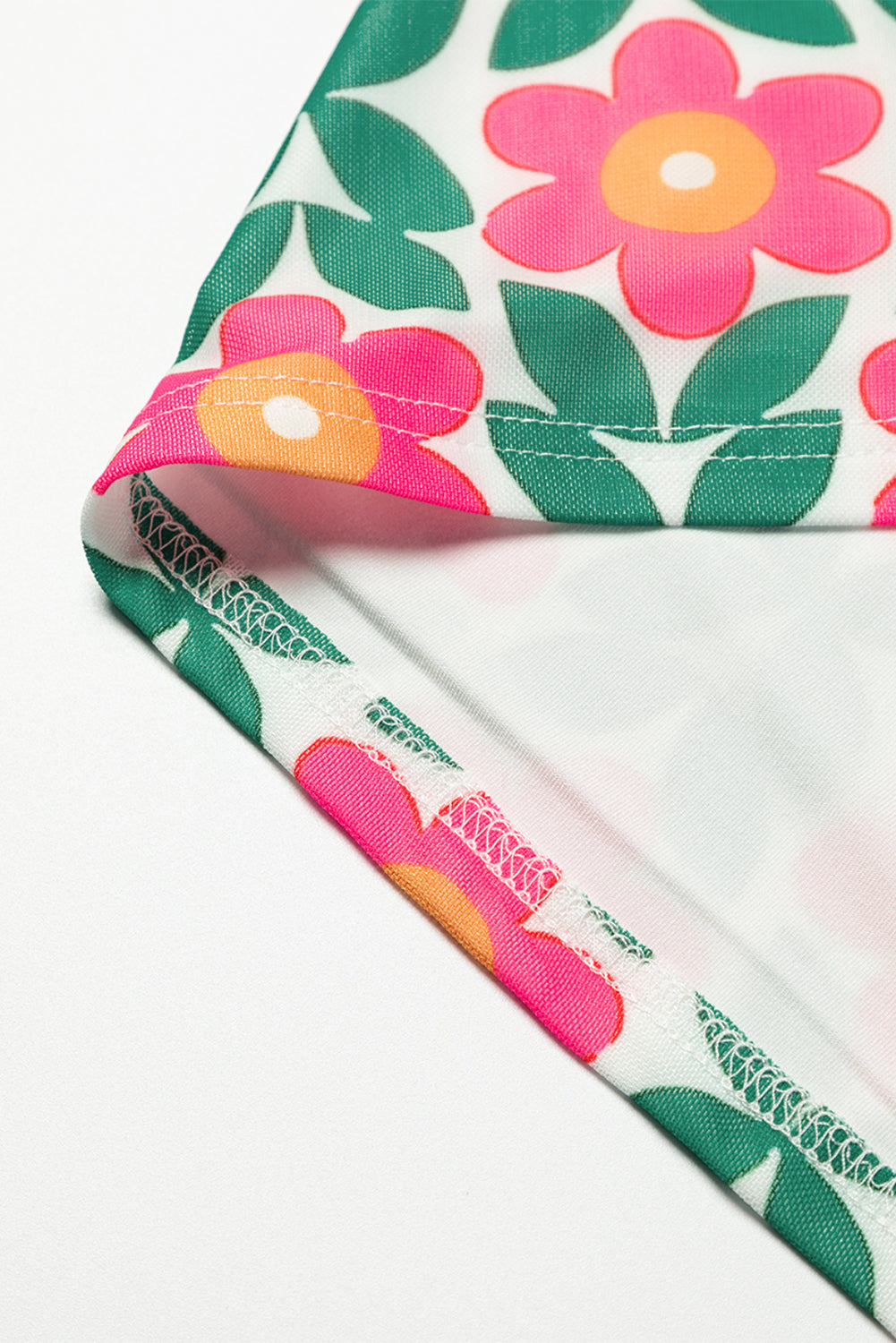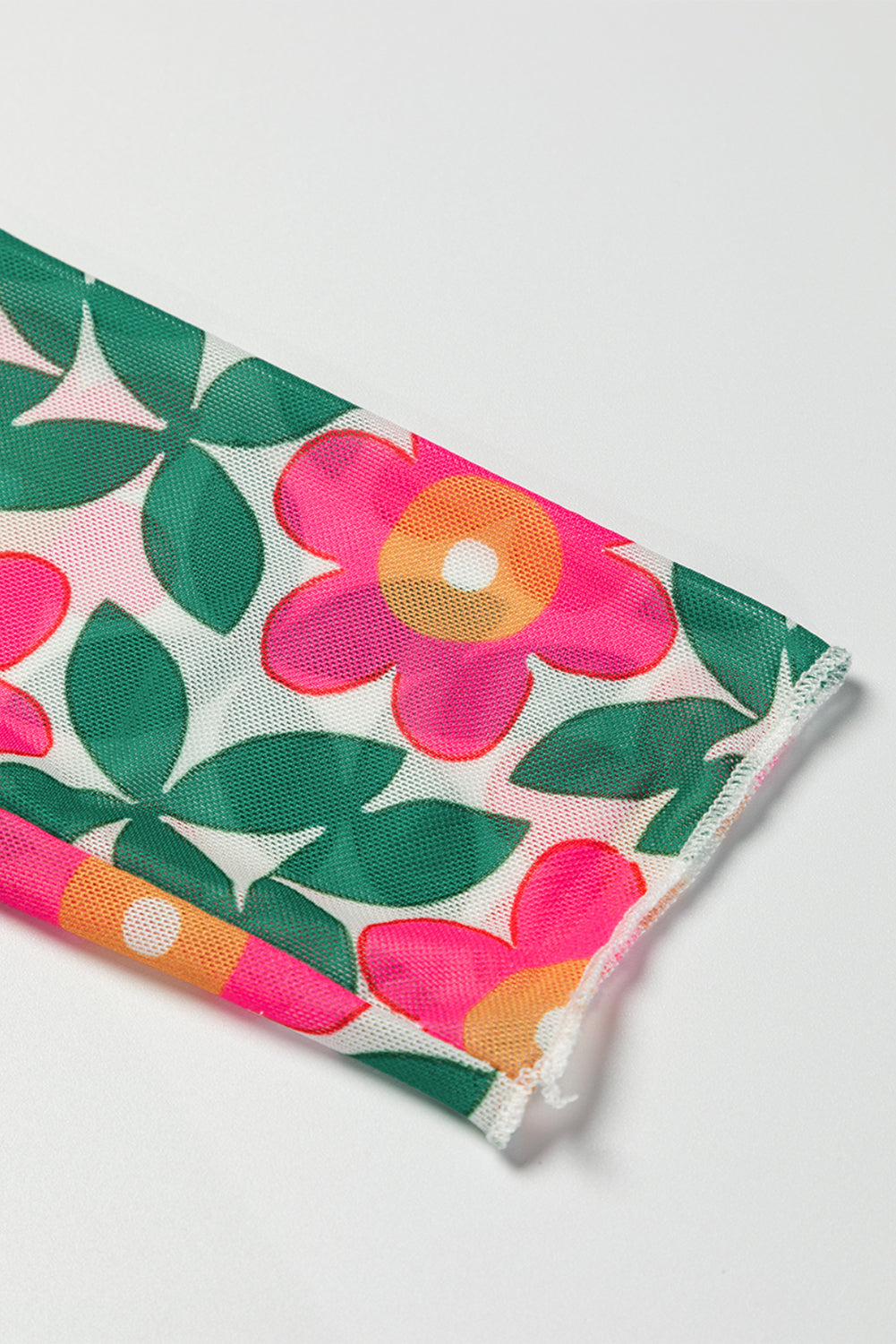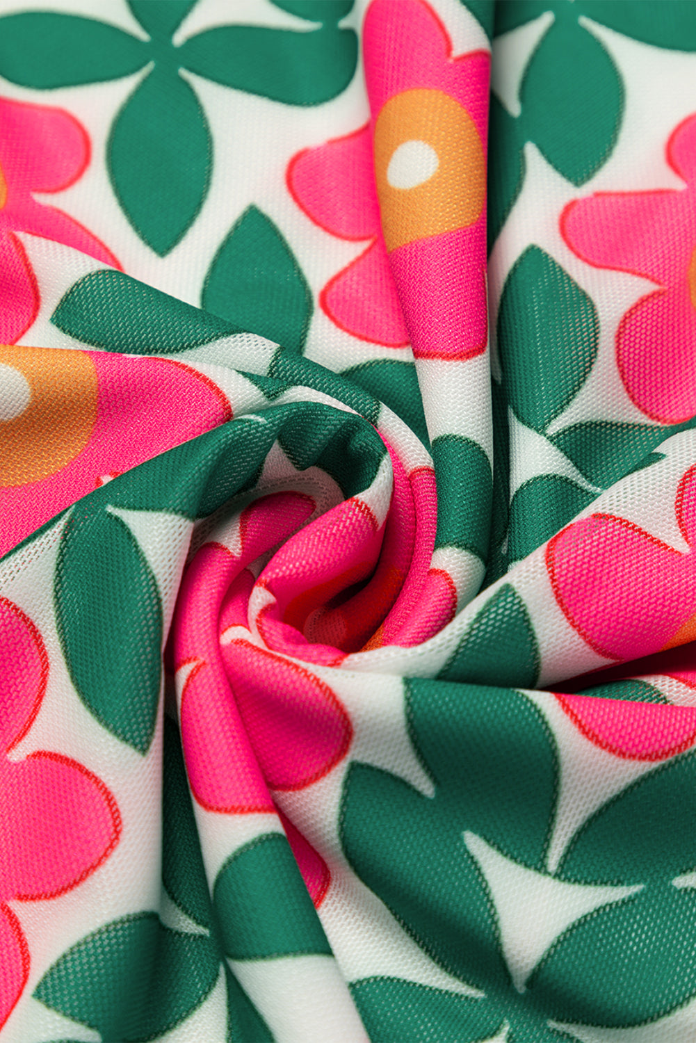 Fiery Red Retro Floral Print Stretchy Long Sleeve Top